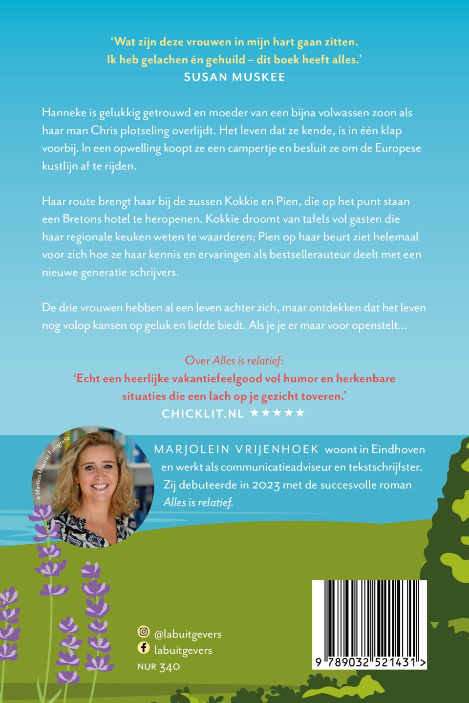 Hanneke is gelukkig getrouwd en moeder van een bijna volwassen zoon als haar man Chris plotseling overlijdt. Het leven dat ze kende, is in één klap voorbij. In een opwelling koopt ze een campertje en besluit ze om de Europese kustlijn af te rijden. Haar route brengt haar bij de zussen Kokkie en Pien, die op het punt staan een Bretons hotel te heropenen. Kokkie droomt van tafels vol gasten die haar regionale keuken weten te waarderen; Pien op haar beurt ziet helemaal voor zich hoe ze haar kennis en ervaringen als bestsellerauteur deelt met een nieuwe generatie schrijvers. De drie vrouwen hebben al een leven achter zich, maar ontdekken dat het leven nog volop kansen op geluk en liefde biedt. Als je je er maar voor openstelt…