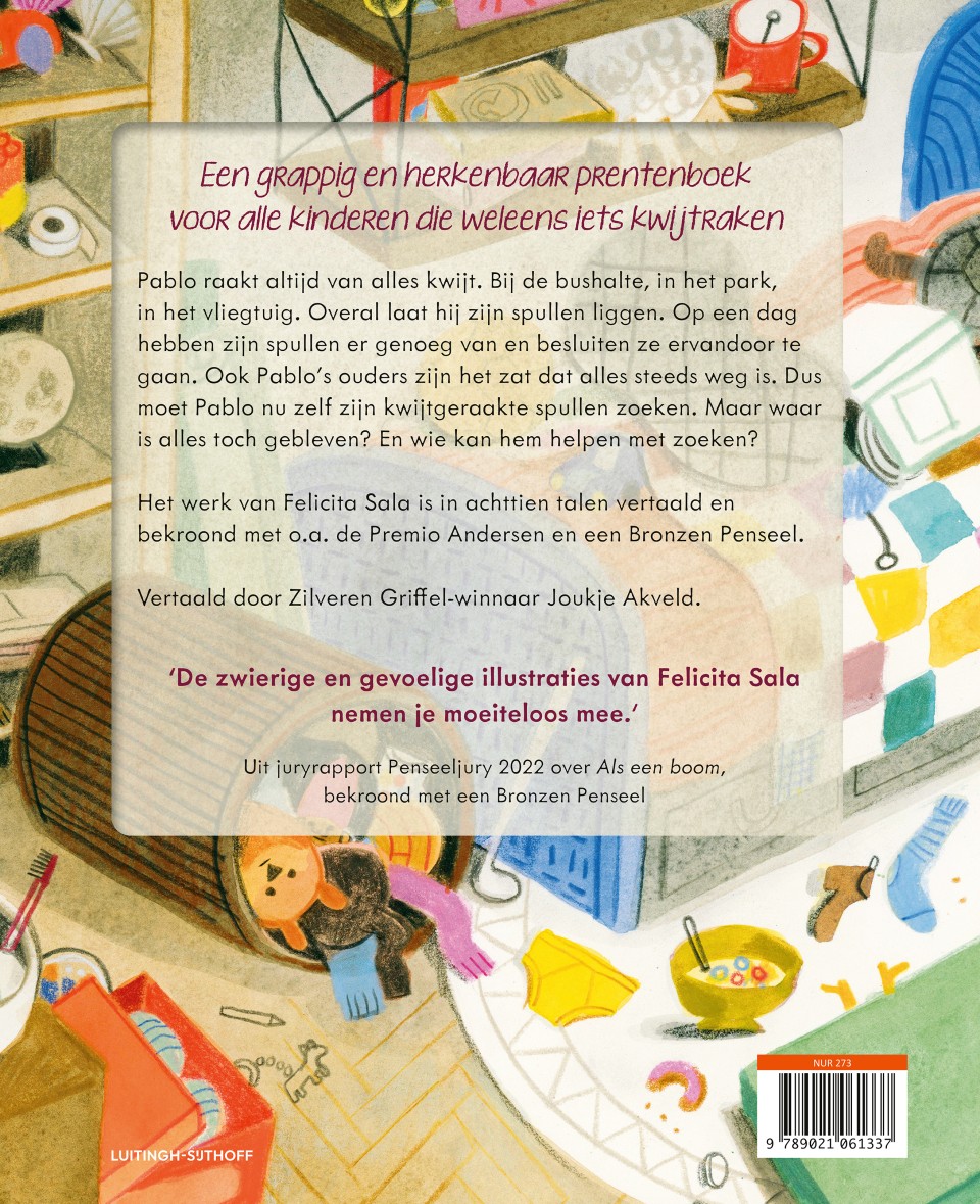 Pablo Warhoofd van auteur-illustrator Felicita Sala (bekend van o.a. Als een boom, bekroond met een Bronzen Penseel) is een grappig en herkenbaar prentenboek voor alle kinderen die weleens iets kwijtraken.