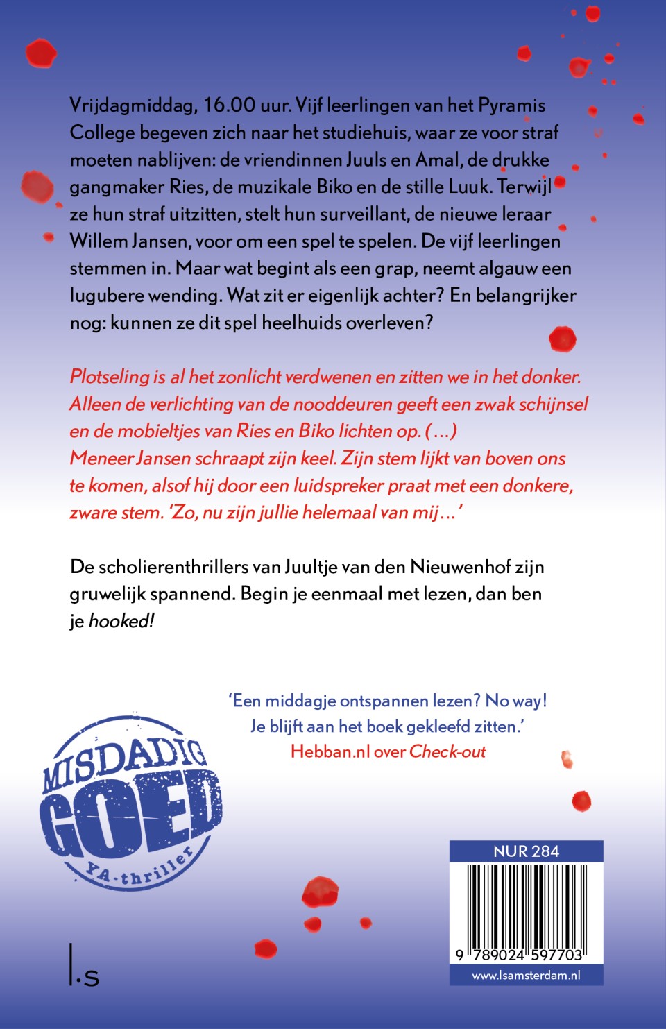 ‘Een middagje ontspannen lezen? No way! Ben je eenmaal begonnen, dan kun je niet meer stoppen met lezen.’ Hebban.nl over Check-out