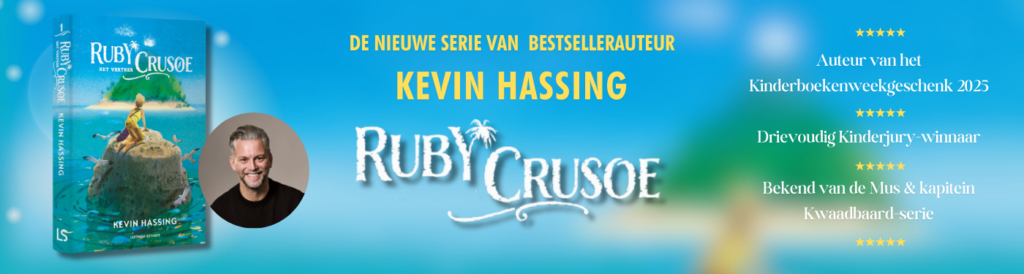 Wat als je plotseling alles moet achterlaten en op avontuur moet gaan? In Ruby Crusoe – Het vertrek begint een spannend avontuur op zee en op een geheimzinnig eiland. Wanneer Ruby’s leven onverwacht verandert, moet ze alles op alles zetten om te overleven. Dit eerste deel van de nieuwe serie van Kevin Hassing is een meeslepend verhaal vol avontuur, mysterie en vriendschap. Perfect voor lezers die houden van spannende boeken zoals Robinson Crusoe, avonturenverhalen en survivalverhalen. Geschikt voor kinderen vanaf 10 jaar.